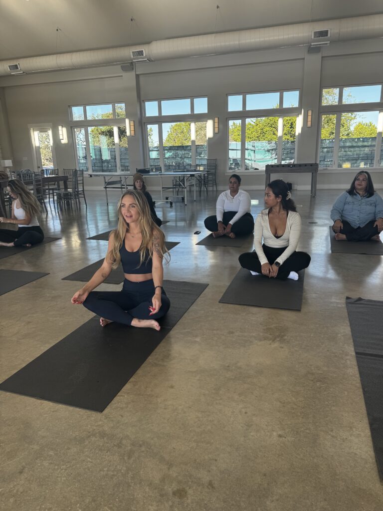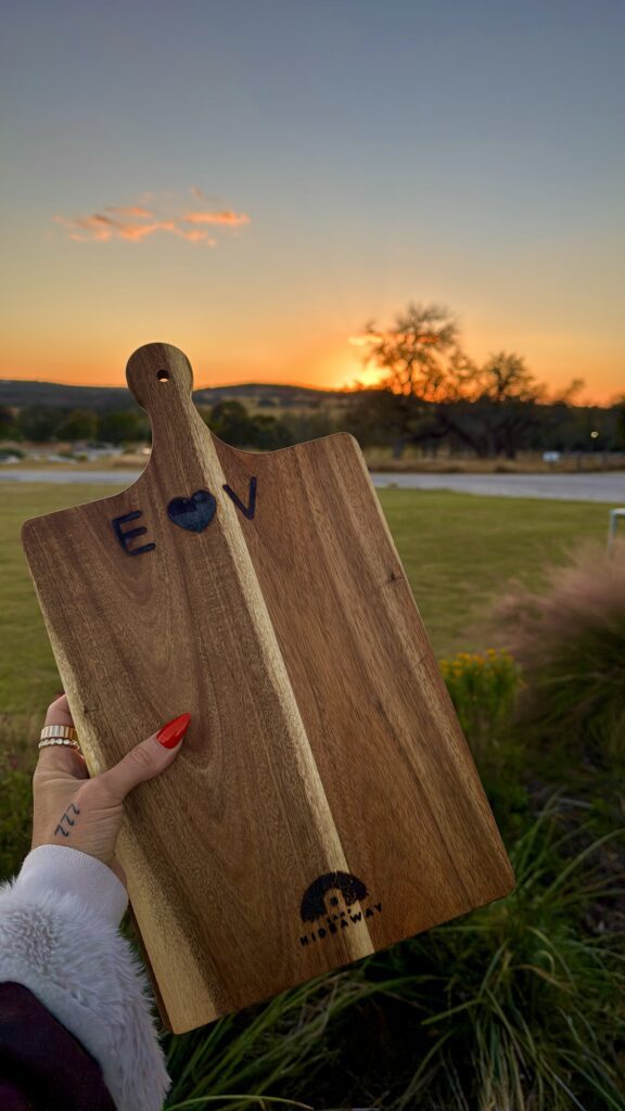 Kim went to Camp Hideaway for an overnight retreat on the first chilly day of fall. It was the perfect experience with a big group of women. We enjoyed al fresco sunset dining, custom charcuterie board branding, roasting marshmallows by the fire at night, and waking up to the sunrise with group yoga.