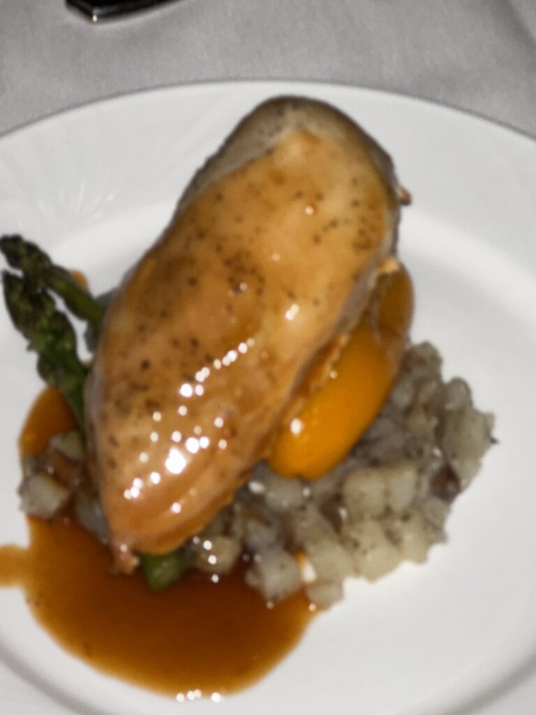 They had a little charcuterie they had like chicken and vegetables along with it and potatoes and then dessert and coffee.